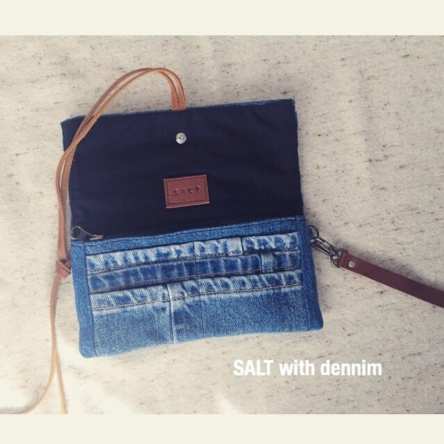 ジーンズのあたり部分を繋ぎ合わせたボーダータイプのSALTオリジナル長財布です。