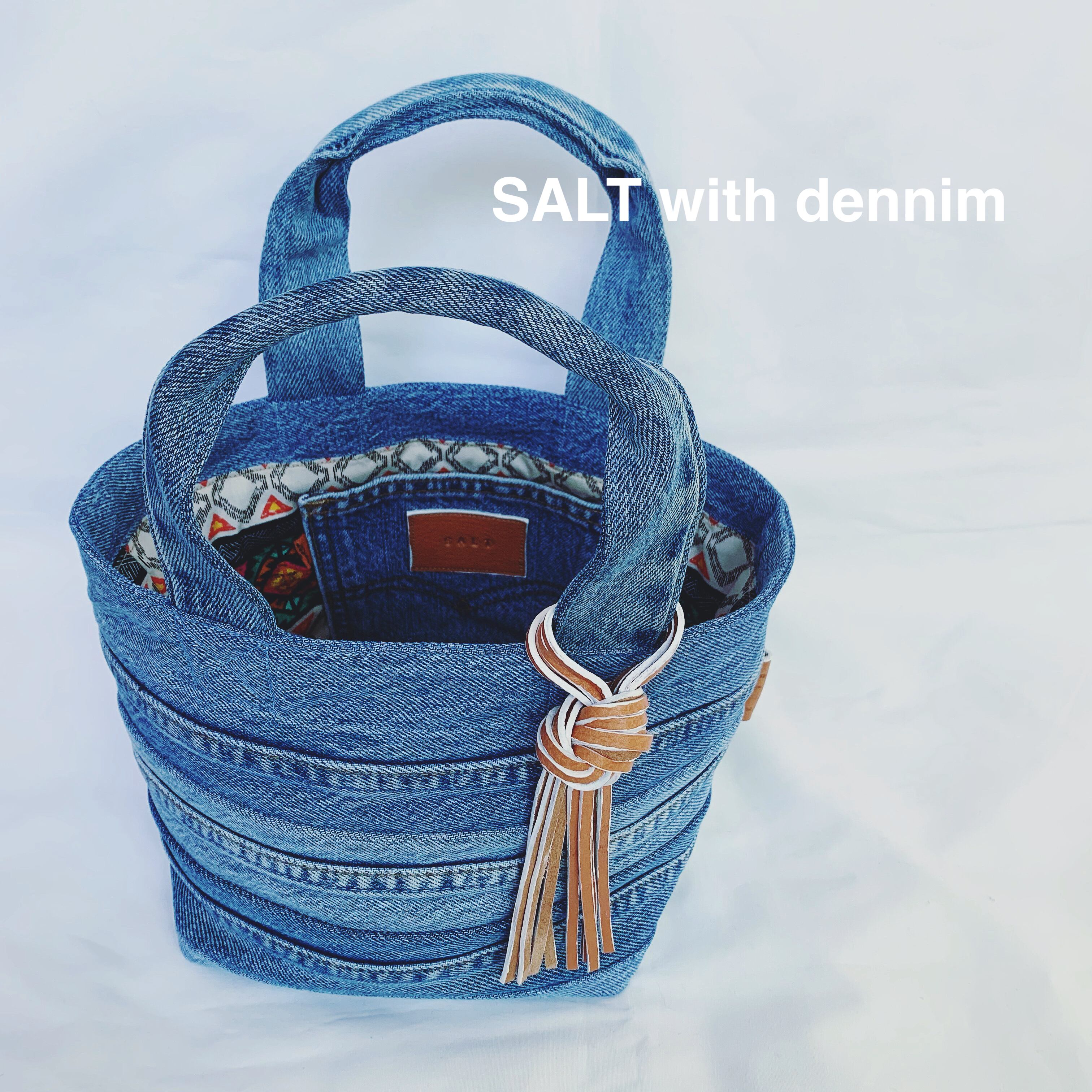 デニムのダブルステッチを繋ぎ合わせたボーダーデザインのコロンとかわいいサマーコーデにぴったりなミニサイズトートです。