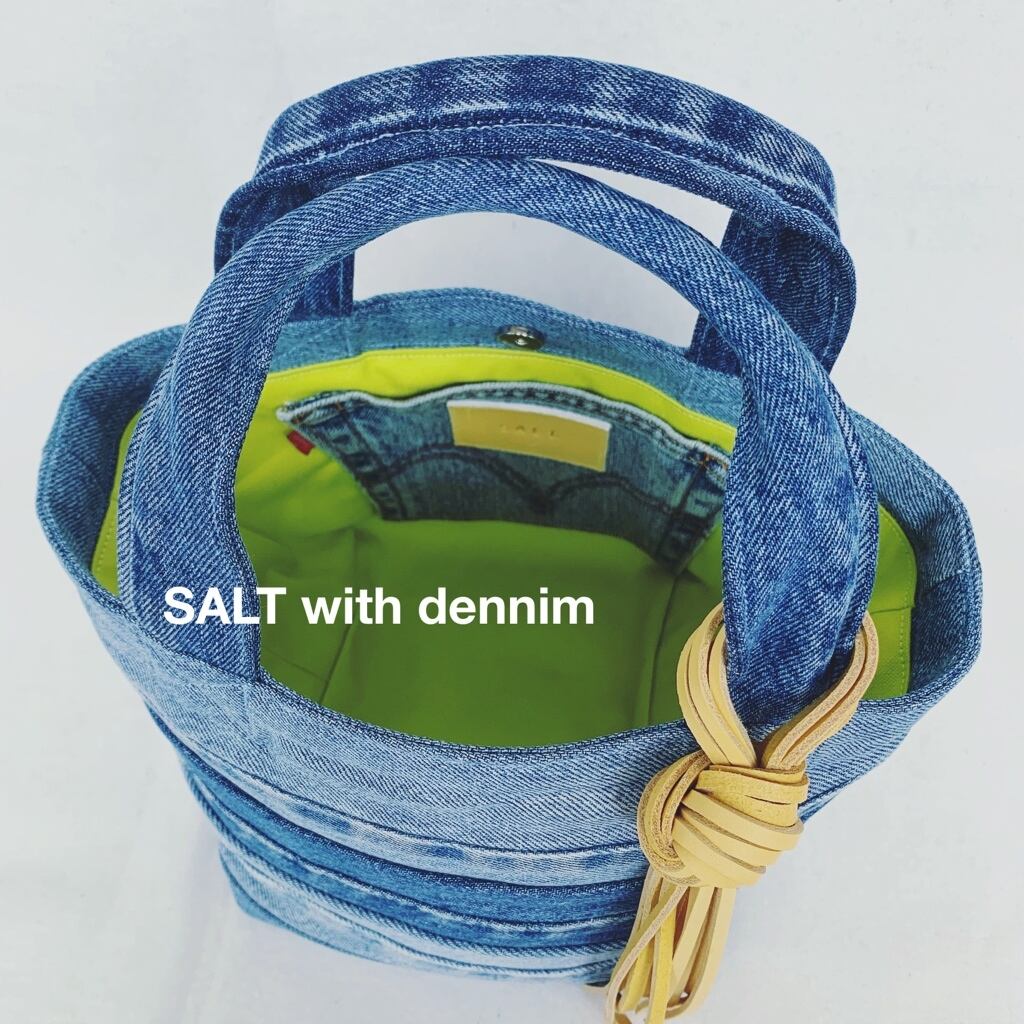 デニムを繋ぎ合わせたボーダーデザインのコロンとかわいいミニトートです。